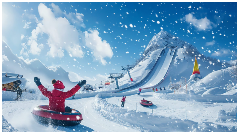 - ледяные горки прямо из Италии для катания на надувных кругах.