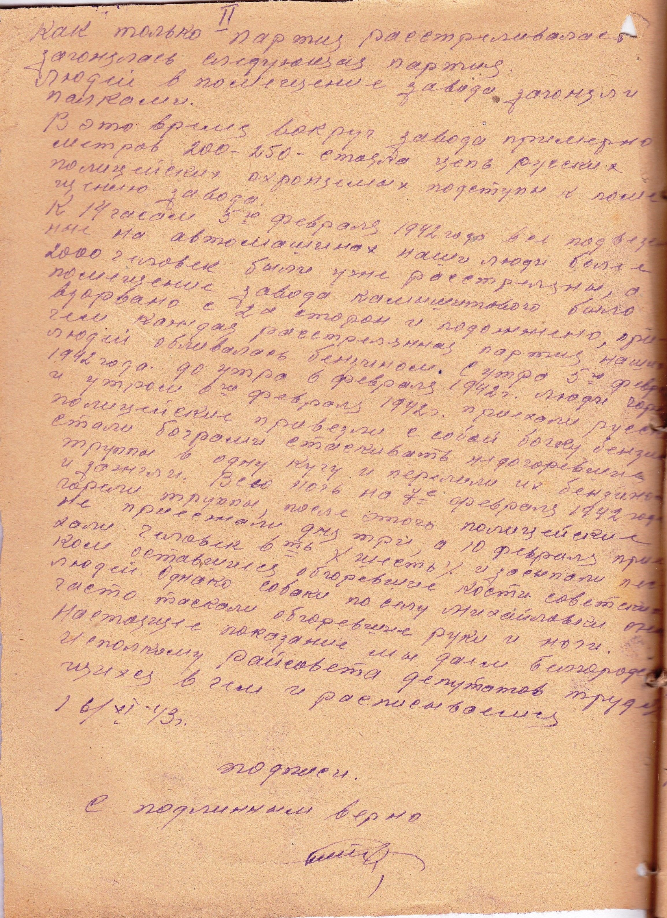 2. Фрагмент показаний из «Акта о зверствах…» от 16.11.1943;