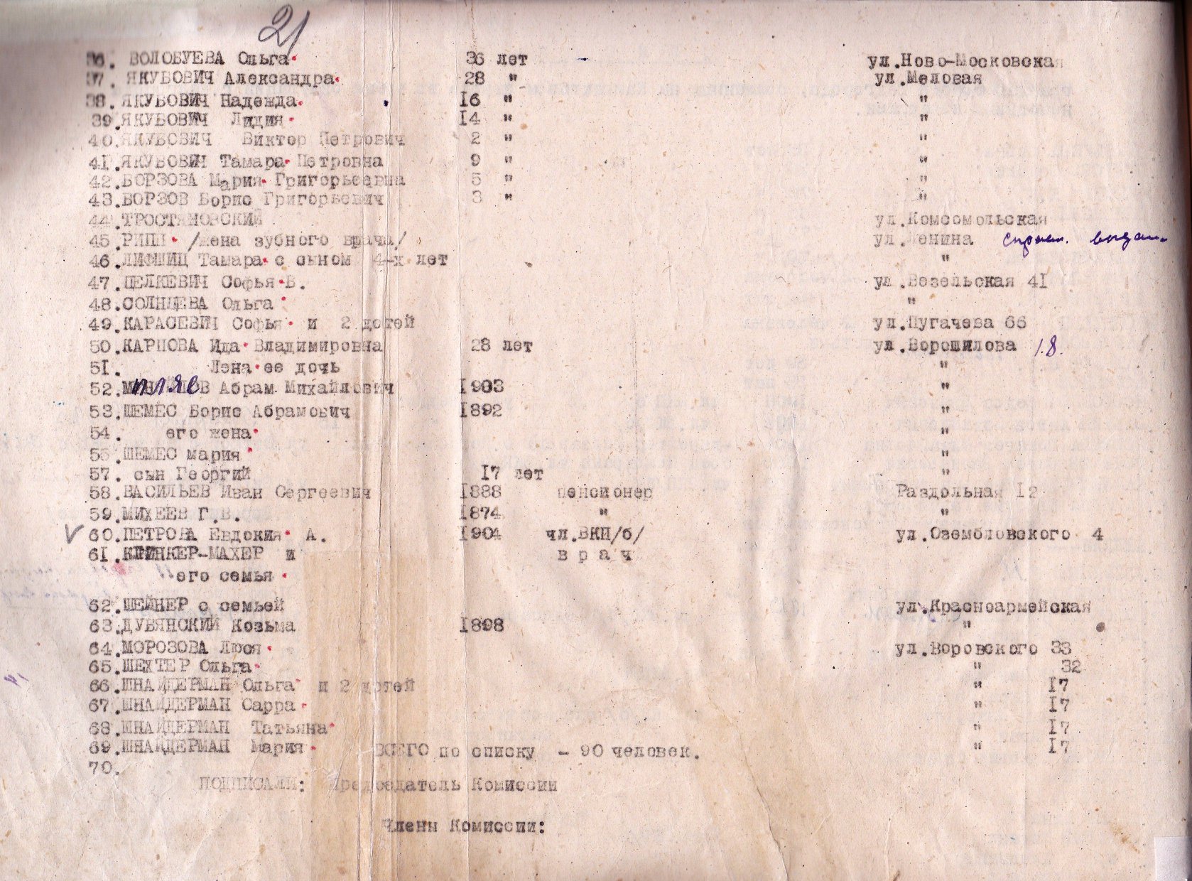 Помимо еврейских семей с указанием возраста убитых детей (от 2 лет и старше) в архивном списке с именами казненных на Камышитовом заводе обращает на себя внимание имя Токшиной Клавдии Гавриловны. Ей было 65. Жила на улице Ворошилова. В списке она под номером 18. В одной строчке с ней записано: «и 8 раненых красноармейцев», а рядом с адресом – «в сарае». С высокой степенью вероятности можно предположить, что Клавдия Гавриловна прятала в своем сарае красноармейцев. За это её расстреляли и сожгли. Вмести с евреями и ранеными красноармейцами. Она ли не «Праведница народов мира»?