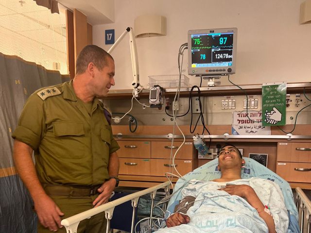 Полковник Ишай Розлин, командующий региональной бригадой "Иегуда", посетил в больнице военнослужащего, получившего ножевое ранение в результате нападения террориста на блокпосте у перекрестка Бейт-Эйнун, возле Кирьят-Арбы.