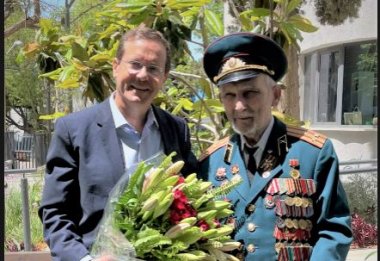 Глава Еврейского агентства Ицхак Герцог посетил тель-авивский дом "Золотой возраст" компании "Амигур" Еврейского агентства и вручил букет цветов ветерану Михаилу Кано. Михаил (98) сражался в битве