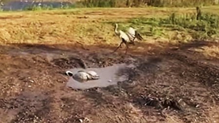 Гибель журавлей в заповеднике Хула. Фото - скриншрт с видеоролика