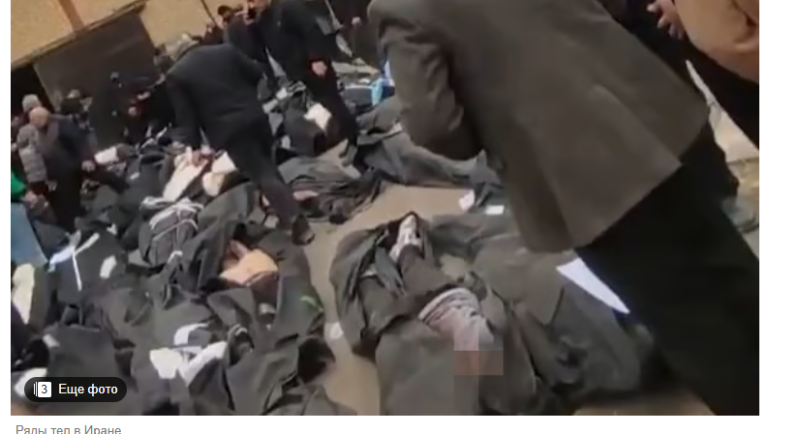 Ситуация в Иране остаётся катастрофической: по данным правозащитной организации HRANA, за время антиправительственных протестов погибли более пятисот тридцати человек, среди которых почти пятьсот демонстрантов и почти пятьдесят представителей сил безопасности, а свыше десяти тысяч участников акций были арестованы. Распространённые в интернете видеозаписи показывают рыдающих родственников рядом с телами погибших и длинные ряды мешков с телами в районе Института судебной медицины Кахризак в Тегеране. В одном из видео указано число 250 — столько тел находилось в одном месте. Несмотря на попытки властей создать видимость нормальной жизни, протесты продолжаются, а иранские силы безопасности применяют слезоточивый газ против семей погибших.