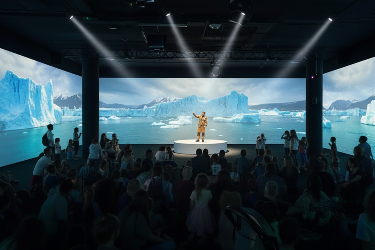 Особое место занимает уникальный интерактивный спектакль с 360°-проекцией «Путешествие в Антарктику и Арктику». Это история смелого и любознательного мальчика, который присоединяется к научной экспедиции. Вместе с ним зрители узнают о древнем ледяном покрове континента, возраст которого превышает 2,7 миллиона лет, и о том, что угрожает этому хрупкому миру. Финал спектакля превратит каждого зрителя в своего рода посланника защиты Южного и Северного полюсов.