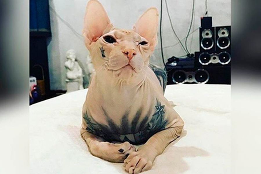 Бес прославился в Instagram своими тюремными татуировками. У животного есть личная страница @karafight_bes, на которой хозяин публикует его фотографии. На аккаунт со сфинксом подписаны тысячи людей.